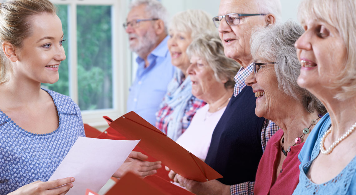 Eine Bewohnerin mit fortgeschrittener Demenz besuchte die Musikstunde. Ihre Sprachfähigkeit und ihr Bewegungsapparat sind eingeschränkt. Auf den ersten Blick schien es, als sei sie nicht wirklich anwesend.