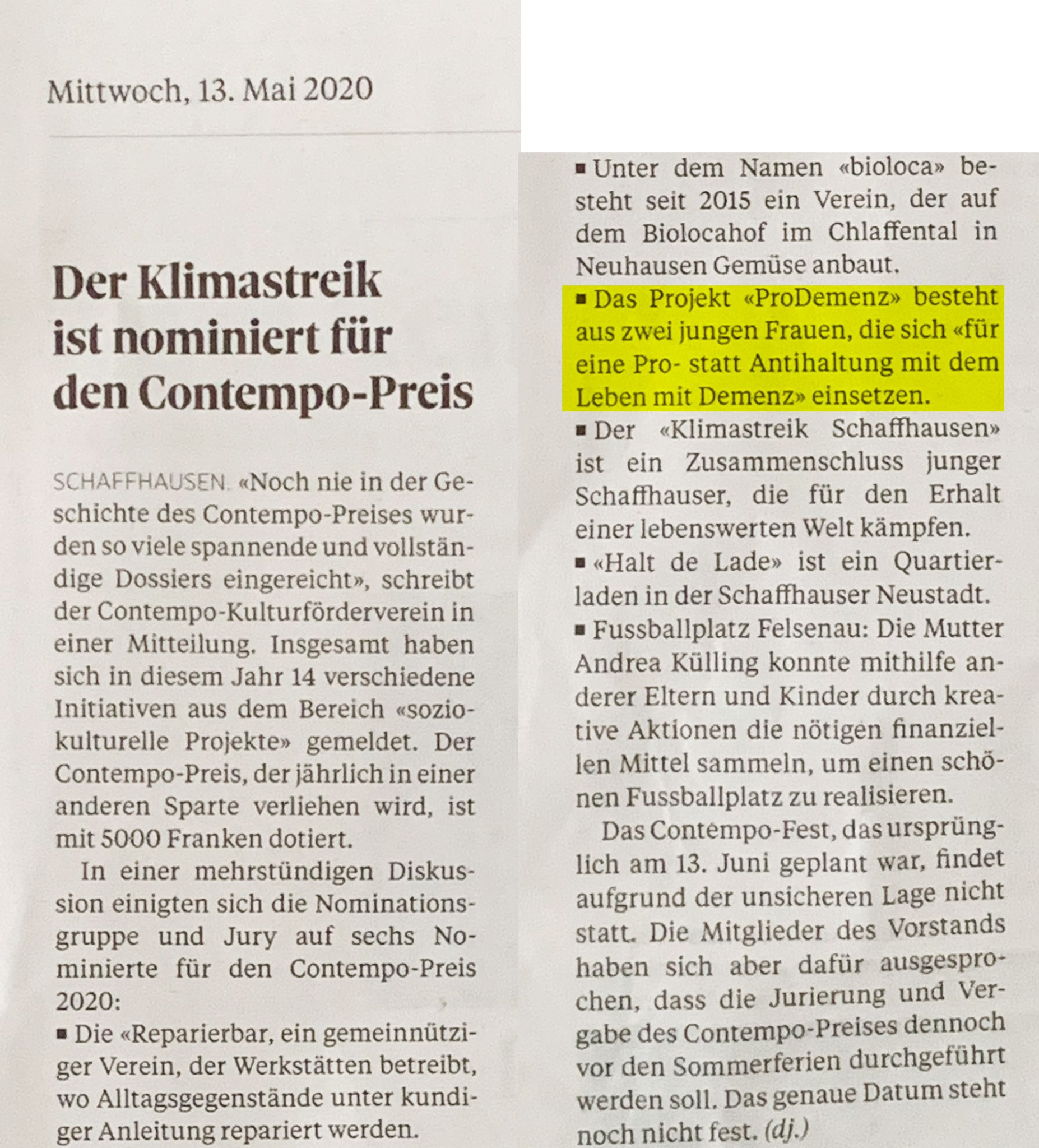 Juhuu! Wir sind für den Contempo-Preis nominiert!!! Das Gewinner-Projekt wird noch vor den Sommerferien bekannt gegeben. Wir wünschen uns und unseren fünf «Mit-Nominierten» gutes Gelingen! Herzlichen Dank an die Contempo-Jury – wir freuen uns sehr!